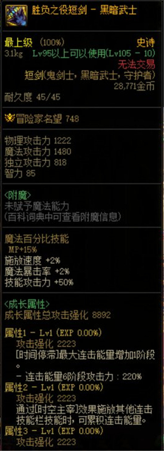 以上就是关于DNF手游110黑暗武士cp武器属性一览的全部内容了,希望可以帮助到有需要的玩家掌握具体的信息。