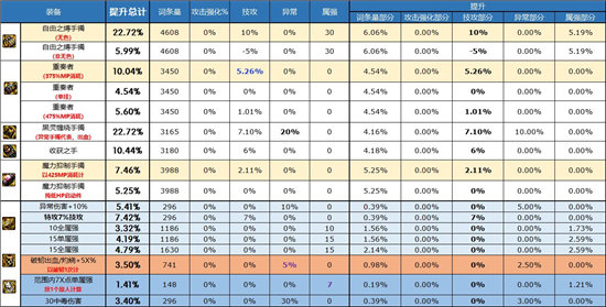 而常规史诗中,无色手镯的无色加成幅度非常高,词条量优秀,技攻优秀,还有15~30点属强,非常全面的加成,在无色技能为主基调的目前版本对主力技能的加成达到了22.72%,非无色的加成也可以和重奏者的某些搭配下(如搭配重奏者+电池包)的收益比肩。