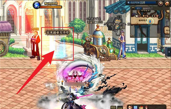 在装备升级区域中,移动角色进入【雷米迪亚大圣堂】,如图所示: