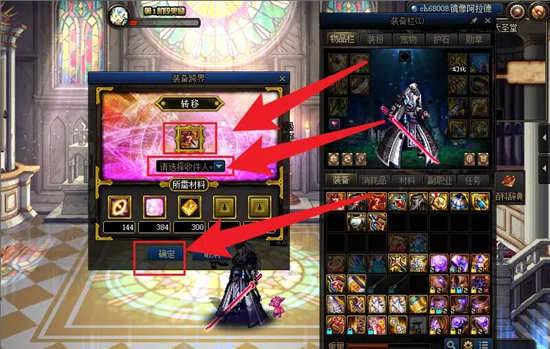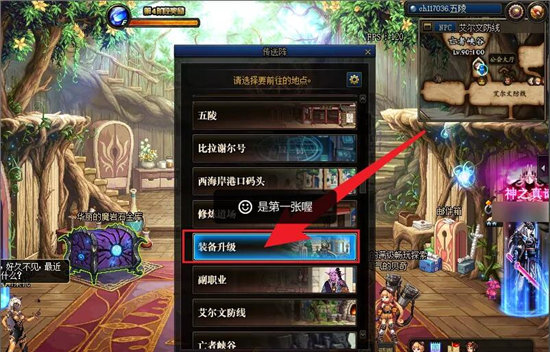 在游戏中,使用赛丽亚传送阵,传送到【装备升级】区域,如图所示: