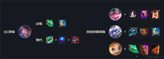 5、装备解析:瑞兹带神装青龙刀大天使科技强,佐伊装备后期选秀和秘宝龙拿,璐璐带法转和功能装,阵容类似于s6的约德尔黑魔过渡简单平滑,可以打大多数强势阵容。