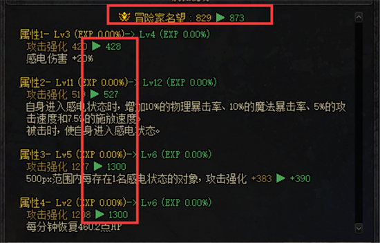每次进行装备提升,都需要消耗一定的金绿柱石(新材料)、金币、灵魂之源。在每次装备喂养后,会根据词条等级的变化进行攻击强化与名望值的直接提升。