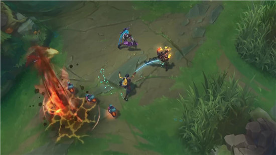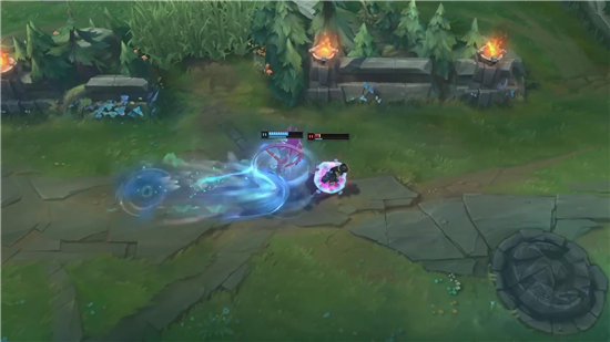 E技能则是突进技能,突进距离似乎不远,从技能演示来跟莎米拉差不多也可以EQ连招,可以连续使用多次,跟莎米拉相当类似。