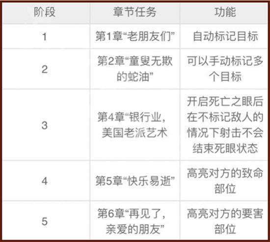 死亡之眼值决定着玩家能维持多久死亡之眼状态,随着死亡之眼等级的提高还会解锁新的死亡之眼技能例如自动标记和高亮敌人的要害部位。