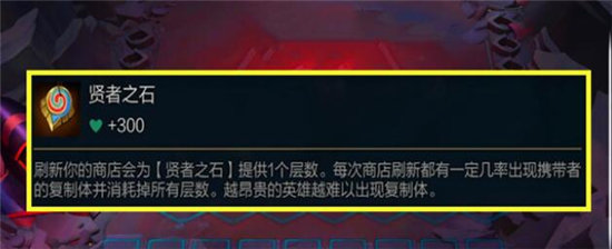 刷新你的商店会为贤者之石提供1个层数,每次刷新商店都有一定几率出现携带者的复制体,并消耗掉层数。