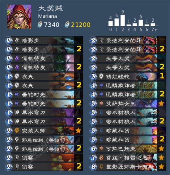 卡组整体构筑是现在盗贼构筑上限最高的版本,两张头等大奖配合迅鳞欺诈师前期打出爆发效果,欧皇的上限看不到,而我