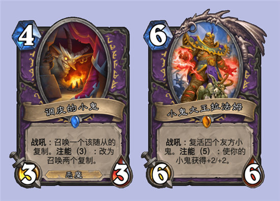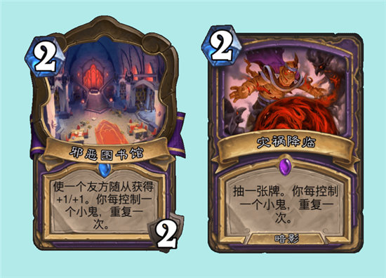 而小鬼术的可怕之处更多还是在地标和盟约法术这两张牌上,邪恶图书馆可以Buff能动的随从,相当于将buff转化为冲锋效果,打出的可是实打实的伤害,这张地标一下子盘活了恶魔法阵,邪恶船运,小鬼集群等等牌,属于起手必留的牌。灾祸降临又被大家叫作“考前刷鬼”或者“小鬼刷夜”,但是和考前刷夜相比,召唤小鬼要比叠法强简单太多了,这张牌的优质程度对于所有术士形态都是一次质变,在小鬼术卡组里,能够保证小鬼术一波接一波的铺场,即使没抽到地标,靠这张优质抽牌,也能生生踢死很多职业。