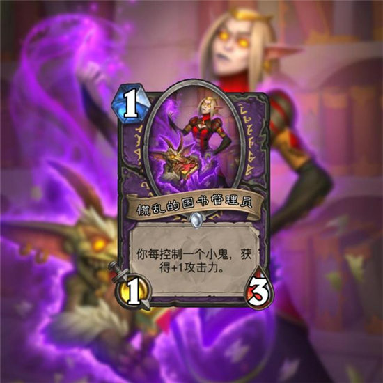 小鬼术前期非常重要的1费随从,就是慌乱的图书管理员了,这张牌带来的前期攻势堪比当年送葬猎卡组里的送葬者,一旦没能在前期快速解掉,血量就会陷入大危机,因此对于前期很难解掉这个怪的卡组,这张牌相当的可怕。