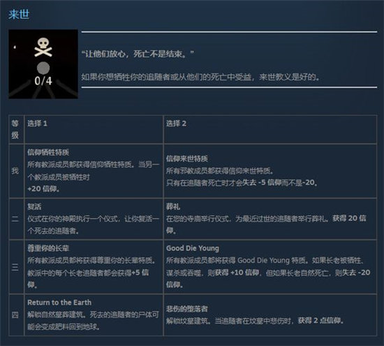 1.牺牲与信仰来世:推荐牺牲因为死亡-20忠诚只是意外死亡,一般流程中体现为BOSS策反小人然后被你打死。所以还是拿个牺牲收益更高(毕竟成就要牺牲10次)。