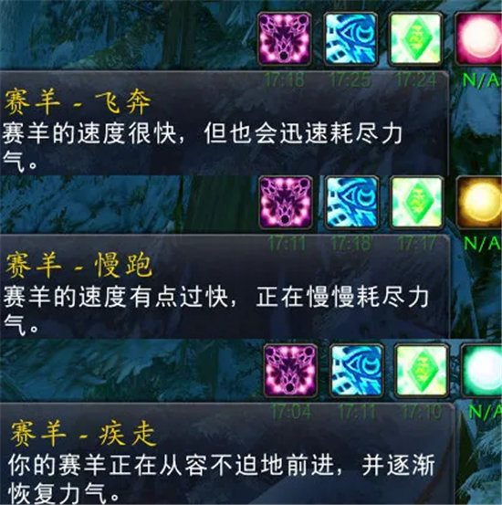 1、接任务之后背包里会出现一个叫做[赛羊缰绳]的道具,不断点击使用就可以给赛羊不断加速,并且在buff位显示当前的速度。保持下面三种状态各8秒即可完成任务。需要注意的是赛羊疲劳值达到100就会精疲力尽,变得非常慢。