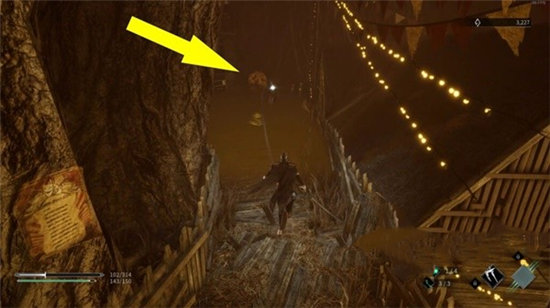拿到笔记后右拐经过木桥,然后向右绕着大树往下走,期间还能捡到【无望者先知手稿】,一直向下来到有两座木桥的岔路口。