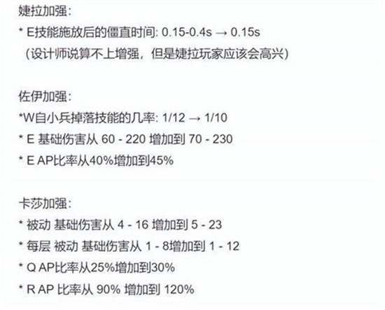 而在即将上线的12.16版本,泽丽面临了全方位的削弱,护盾AP加成降低、Q基础伤害略微增加,但是攻击力加成有所降低,W法术强度加成从60%降至40%。虽然有很多玩家认为这还是没有削弱到泽丽的根本,不过这连续的几次削弱会让赛场上泽丽的登场率和强度有所下降。