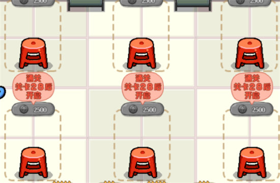 椅子要先解锁然后进行升级,每解锁一把椅子可以同时服务多一名顾客,反应速度快的勇士们就可以凭借这个优势快速通过关卡。而升级椅子可以提升顾客的等待时间,勇士们的反应时间可以有所延长,笔者建议解锁椅子以及升级放在第四、第五位。