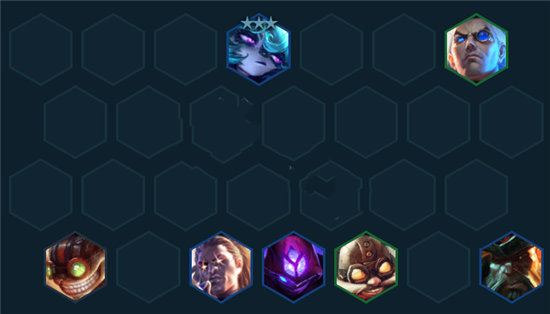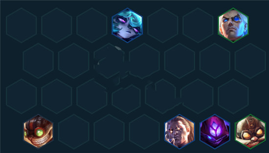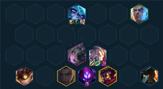 阵容组成(从左到右,从上到下):薇古丝(3)、斯维因(2)、阿狸(4)、卢锡安(3)吉格斯(1)、金克丝(5)、玛尔扎哈(3)、维克托(5)普朗克(3)