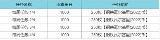 2、钢铁瓦尔基里(2022)每周任务