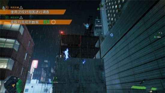 爬上工地最高处,瞄准对面大楼的天狗,空格爬上去。