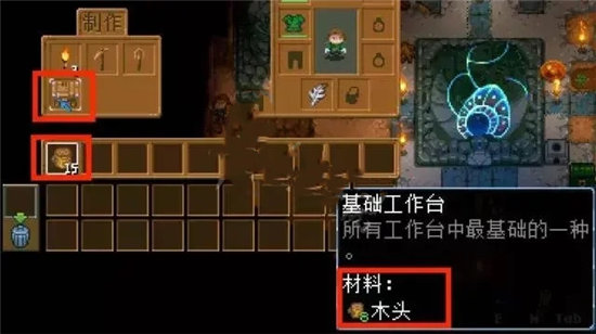选择“制作”界面的“拆解修理台”,使用5个“木头”与5个“铜锭”制造并放置: