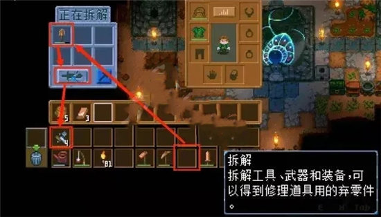 靠近并选择“拆解修理台”按“E”互动,将工具放入“正在拆解”界面,点击“拆解”则会获得“弃零件”: