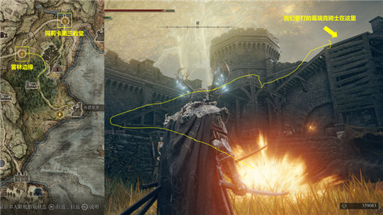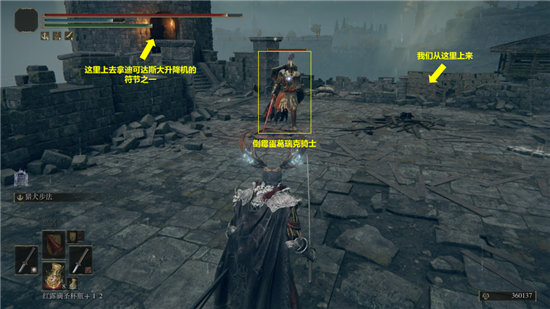 2. 一路向南,来到海德要塞,沿图所示路线一路向上击败要塞顶层的葛瑞克骑士,击败他后会获得战灰“鲜血斩击”。