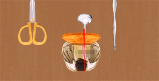 1、【真的会蟹】关卡首先使用剪刀,将蟹钳和蟹腿都剪下来