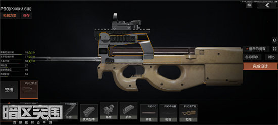 暗区突围手游这款游戏里面的枪械是非常的多的,很多小伙伴们都是可以选择自己喜欢的枪械来进行使用,但是里面的武器都是可以进行改装的,很多小伙伴都不知道自己的枪械该如何进行改装,小编今天就要介绍一下p90改装方法,这是一款射速非常快的枪械,非常多的玩家都是选择他,改装的武器可以让你武器本身压枪更加的稳健,不会那么抖,所以有压不住枪的小伙伴们就来下方看看小编给你们整理出来了详细的改装方法,让你们在游戏中可以轻松的进行杀敌;