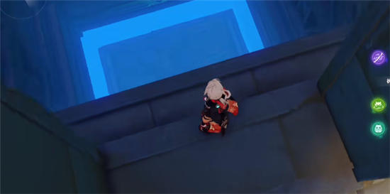 2、我们先触发右侧的升降机机关,然后会出现一层蓝色的屏障。