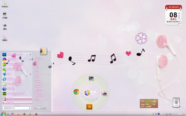 粉红音乐耳机win7主题