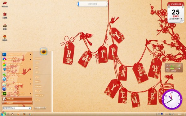 新年剪纸win7主题