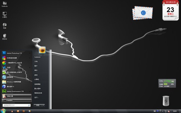 手绘白色耳塞win7桌面