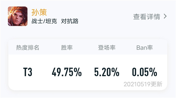 可能是近些版本对抗路有了传送使得孙策优势大大降低,再加上现在对抗路都是像马超、夏洛特这样花里胡哨的英雄,使得玩家们渐渐淡忘了孙策。